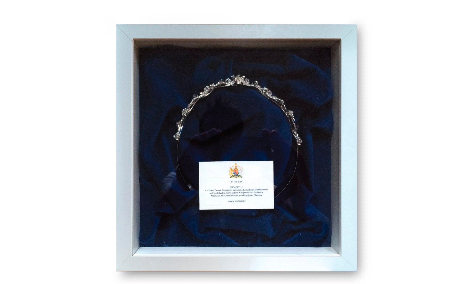 REISEDIADEM ELISABETH ll von Gottes Gnaden Königin des Vereinigten Königreiches Großbritannien und Nordirland und ihrer anderen Königreiche und Territorien, Oberhaupt des Commonwealth, Verteidigerin des Glaubens besucht Deutschland ELIZABETH II by the Grace of God, of the United Kingdom of Great Britain and North Ireland and of Her other realms and territories Queen, Head of the …